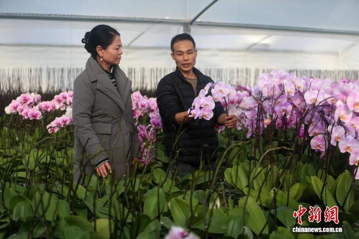 11月25日,基天卖力人尚胜祥给瞅客引见胡蝶兰种类。弛忠苹 摄