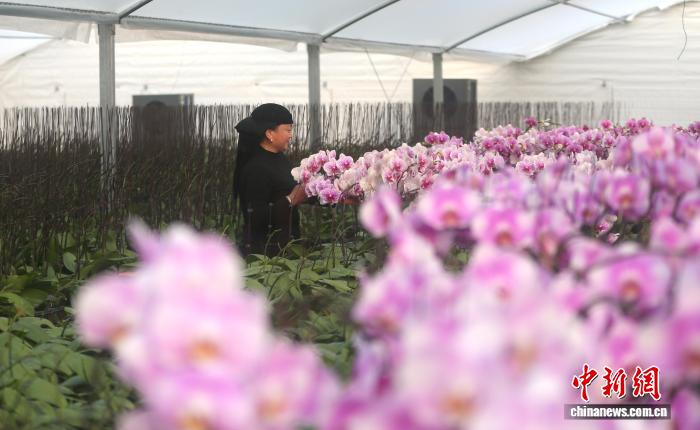 11月25日,花农正在群科镇胡蝶兰下规范繁育基天挨理花苗。弛忠苹 摄
